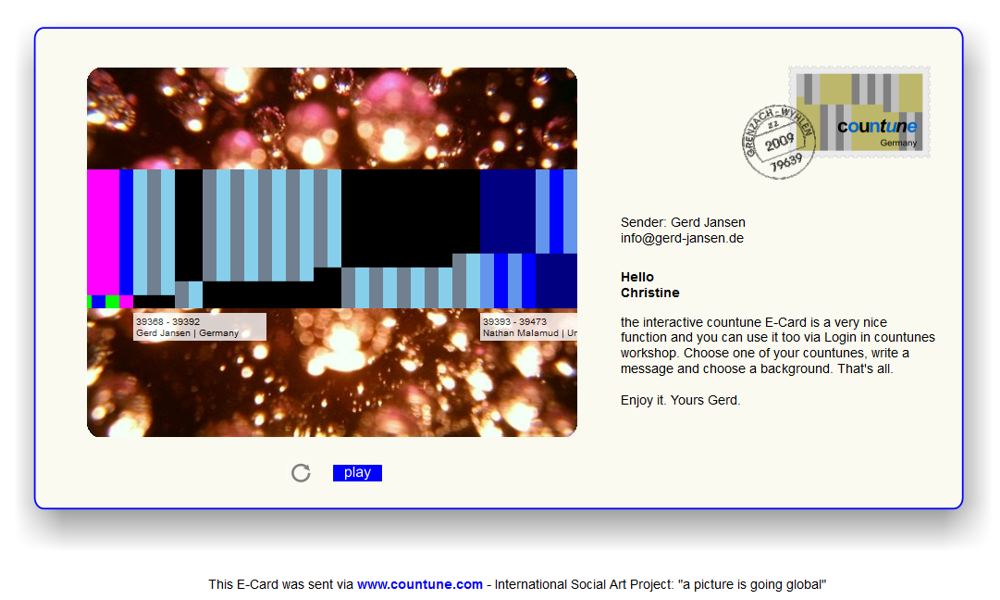 The recipient then receives your picture, can set the countune tape in motion and listen to music.