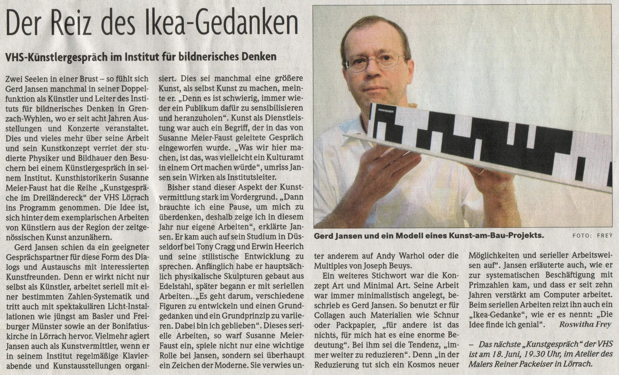 Der Wyhlener Künstler Gerd Jansen lud am Samstagabend ins Institut für bildnerisches Denken, um Einblicke in seine aktuellen Projekte zu geben. ... Read more...